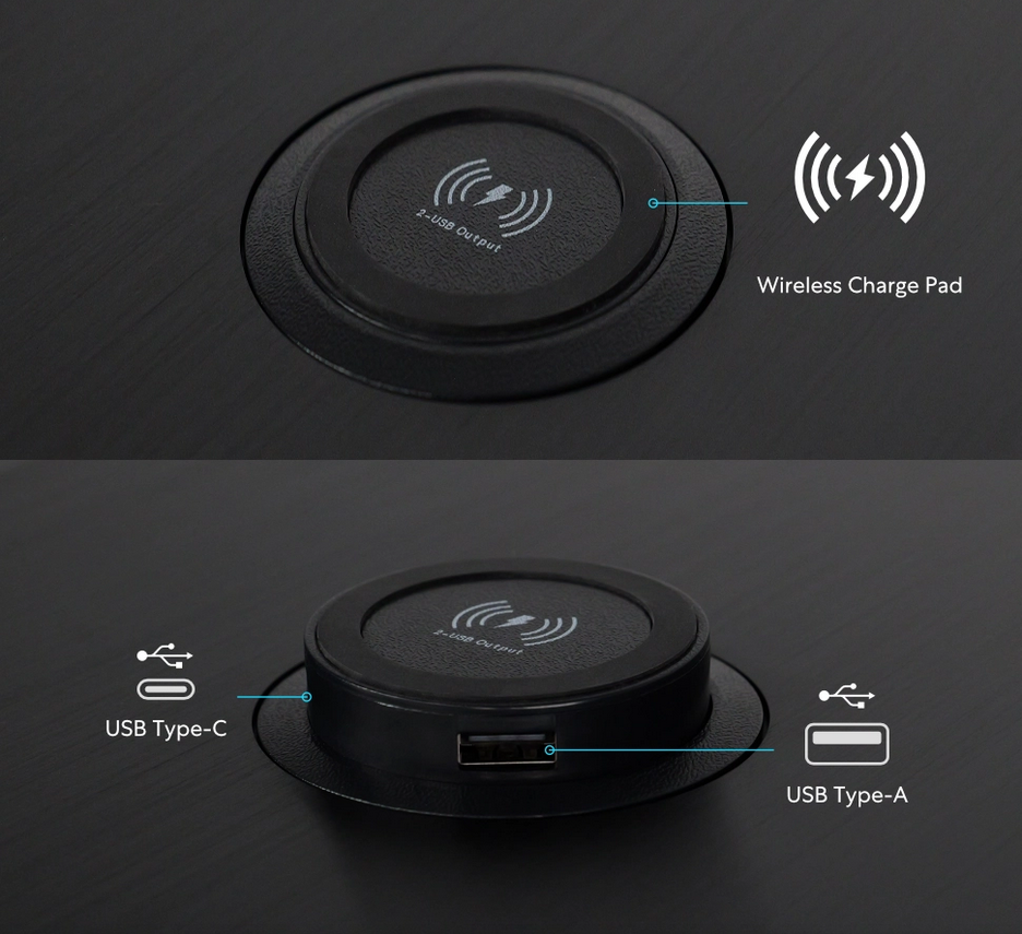 Hides excess cables and power adapters behind the desk, ensuring an ultimate clean, clutter-free desk station!
