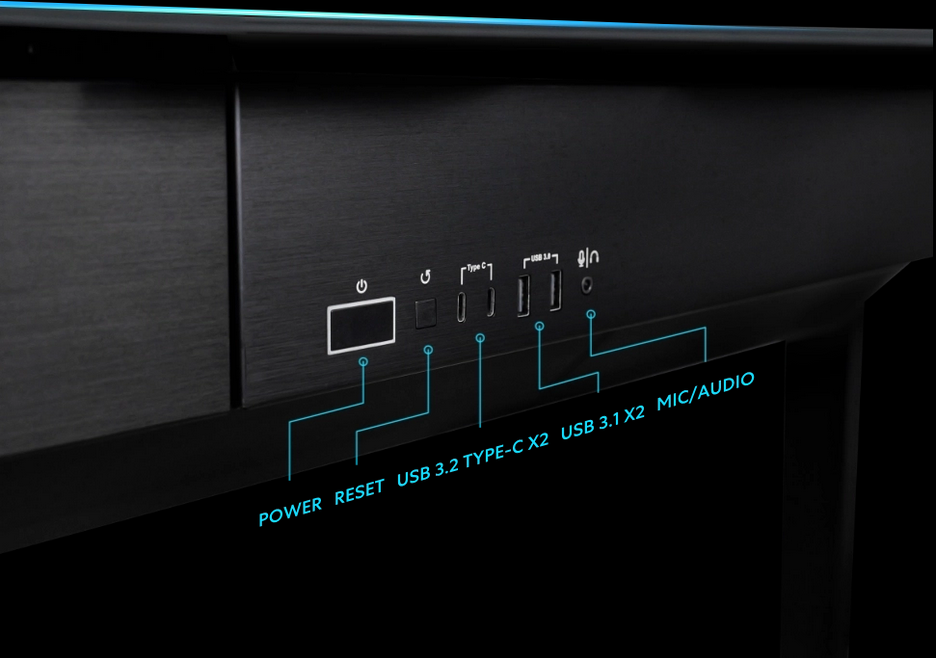 Power + Reset + USB 3.1 Type C x 2 + USB 3.0 Type A x 2 + Mic/Audio x 1
