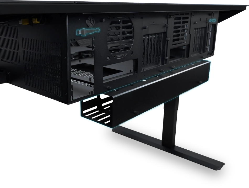 Designed for both single and dual systems, the DK07 offers versatility for gamers and professionals alike to build the pc in the high-end desk. The modular bracket design at rear enhances compatibility and simplifies installation process when switching between two systems.