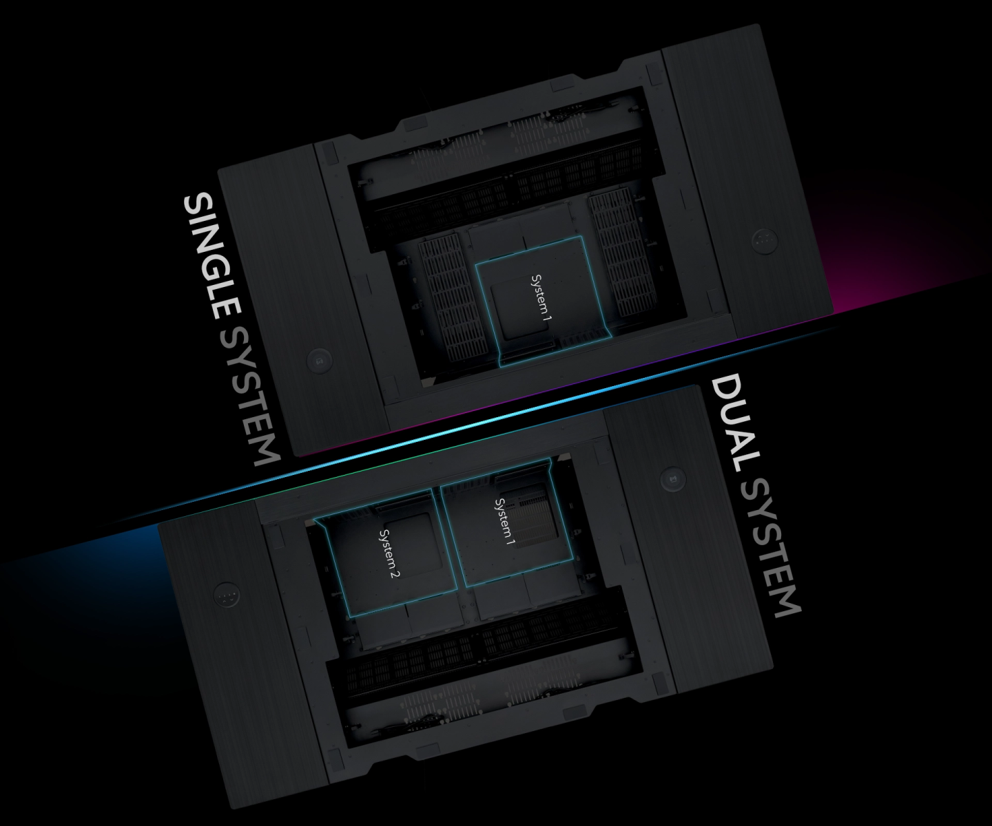 Equipped with 2 sets of front IO for each system, providing convenient access to IO ports and controls.
