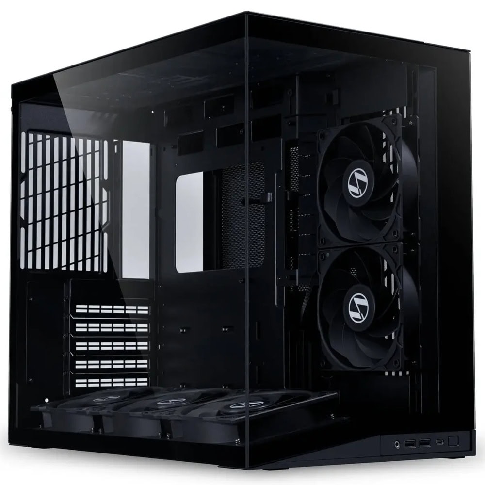 - Pillar-less tempered glass front and side panels for an unobstructed internal view