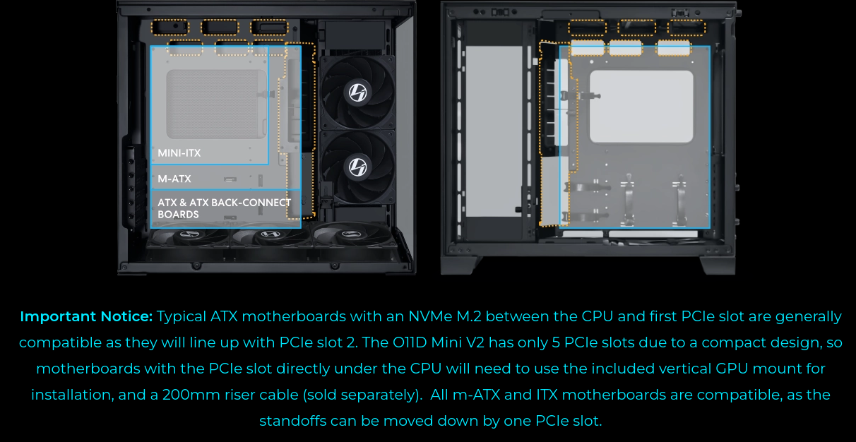 Only 2L larger than the original O11D Mini, but redesigned for greater hardware compatibility and improved airflow.