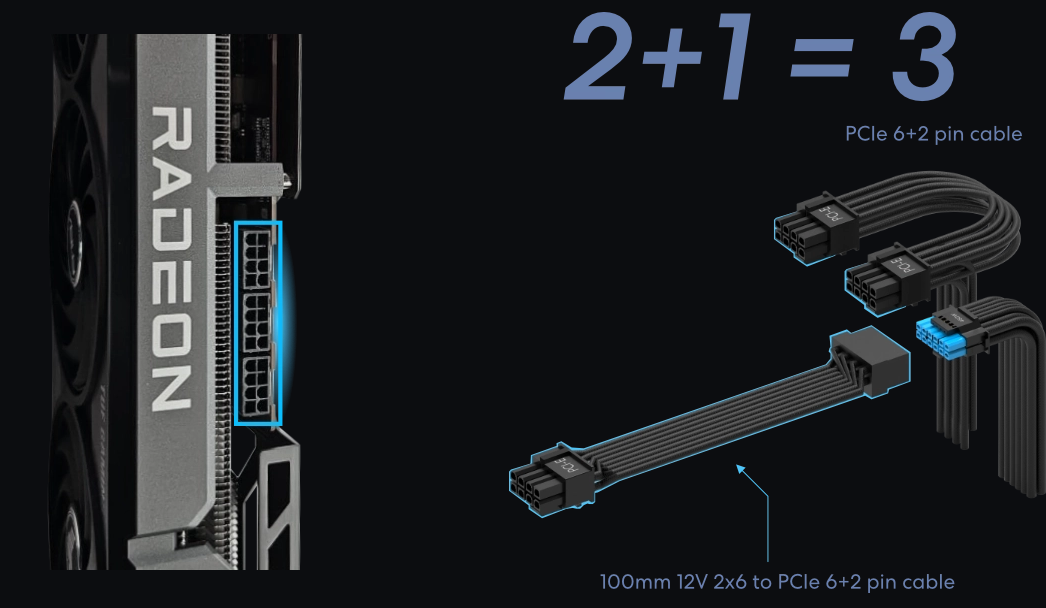 The RB 750W goes further with an extra 100mm 12V 2×6 to PCIe 6+2 pin cable, delivering a total of three 8-pin connectors for high-end AMD GPUs. This added flexibility makes it a future-proof choice for demanding users.