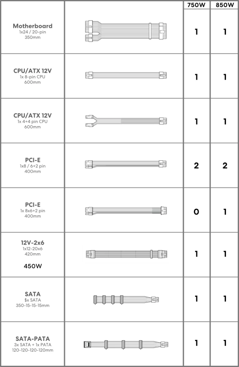 Each cable is engineered for ease of use, with dual-color connector housings for intuitive installation, reinforced soldering for improved reliability, and a 20.5mm connector width optimized to prevent interference during GPU mounting.