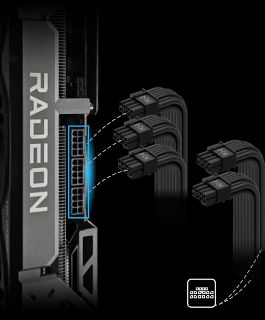 TRIPLE PCIe 6+2 pin GPU SUPPORT Provides up to five PCIe 6+2 connectors (four on the 850W model), meeting the power needs of high-end AMD graphics cards. This flexible design makes it an ideal choice for users planning future performance upgrades. | ![]() |