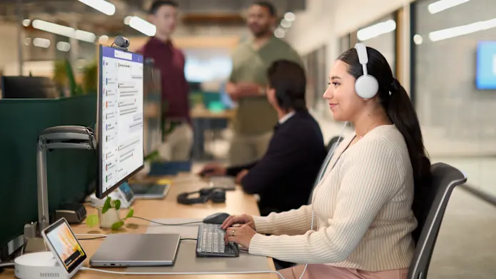 Be heard, all the time Your voice, front and center. Dual noise-canceling mics with AI-based algorithms tune out the background — the chatter, the typing — so you come through crystal clear. And as a nice addition, it’s certified for Microsoft Teams Premium Microphone for Open Office requirements. | ![]() |