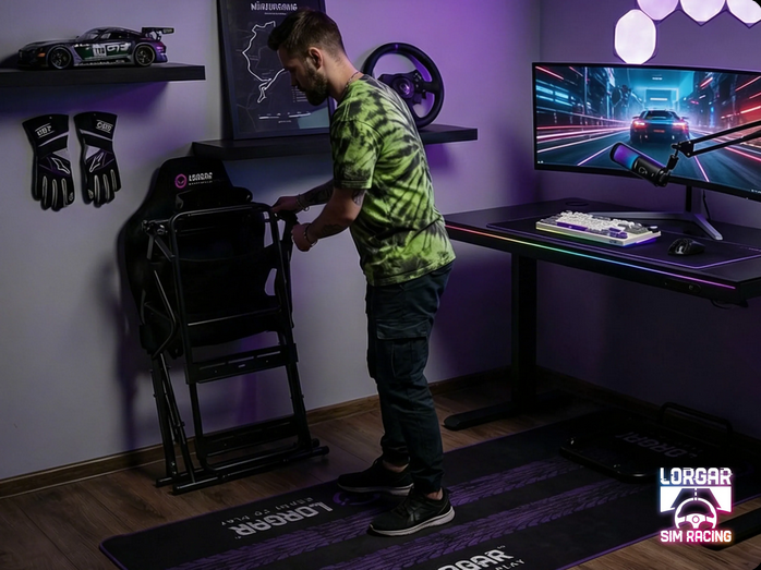 Foldable Design The Advanced RAF1 addresses the core challenge of racing at home: space. When unfolded, the cockpit provides a stable 150 x 70 x 105 cm racing platform. After the session, it collapses to just 37 x 70 x 123 cm, compact enough to slide behind a door, into a closet, or against a wall. The folding mechanism maintains structural integrity while allowing setup and breakdown without tools. | ![]() |