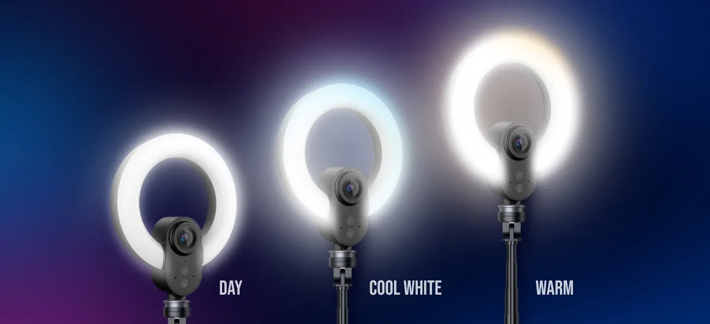 Ринг светлина Вграден 5.5-инчов ринг панел с 36 LED диода гарантира перфектно осветление във всякакви условия. Регулирайте яркостта и цветната температура (1700K–14000K) или използвайте като допълнителна лампа за работното място. | ![]() |