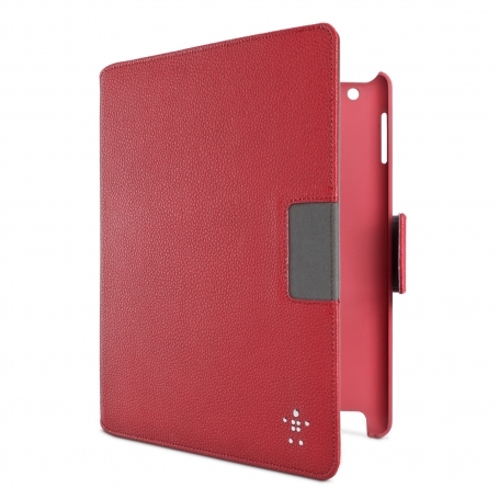 Луксозен кожен кейс (естествена кожа) и поставка за iPad 4, iPad 3, iPad 2 - Belkin Cinema (червен)