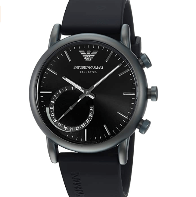 С динамичния стил на дизайна на Emporio Armani и предимствата на днешната технология, хибридният смарт часовник Emporio Armani Connected е съвместим с Android и iPhone смартфони