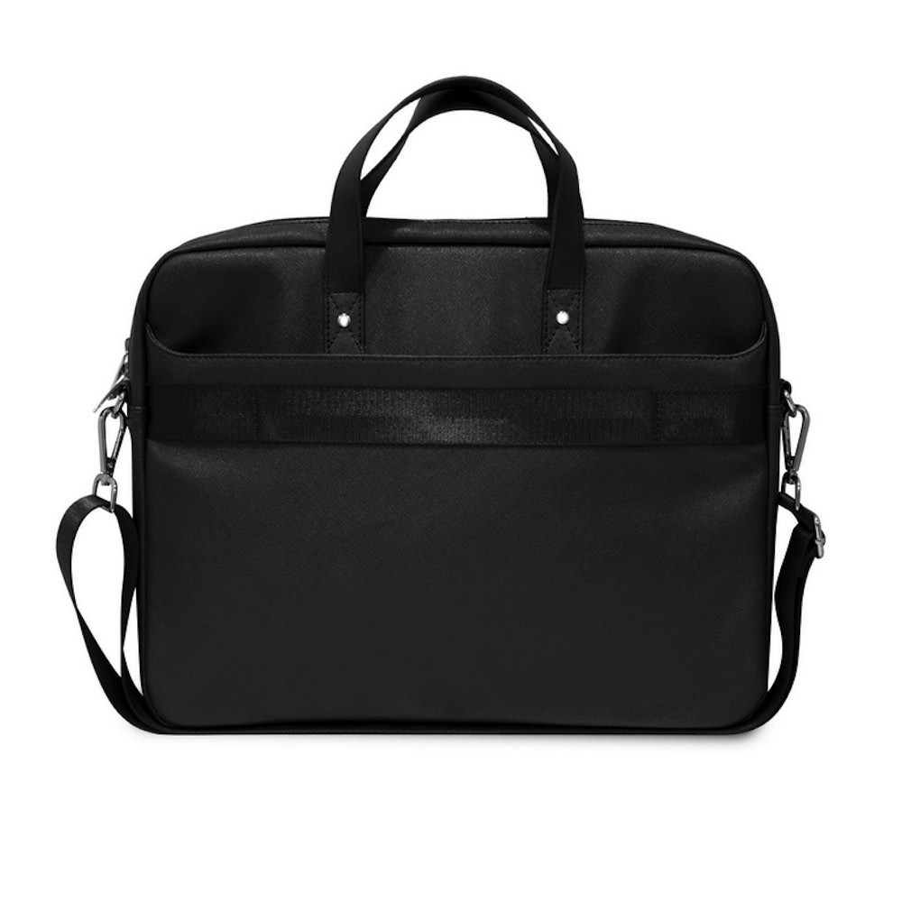 Луксозна дизайнерска чанта с дръжки и презрамка за преносими компютри до 16 инча - Guess Saffiano Triangle Logo Laptop Bag 16 (черен)
