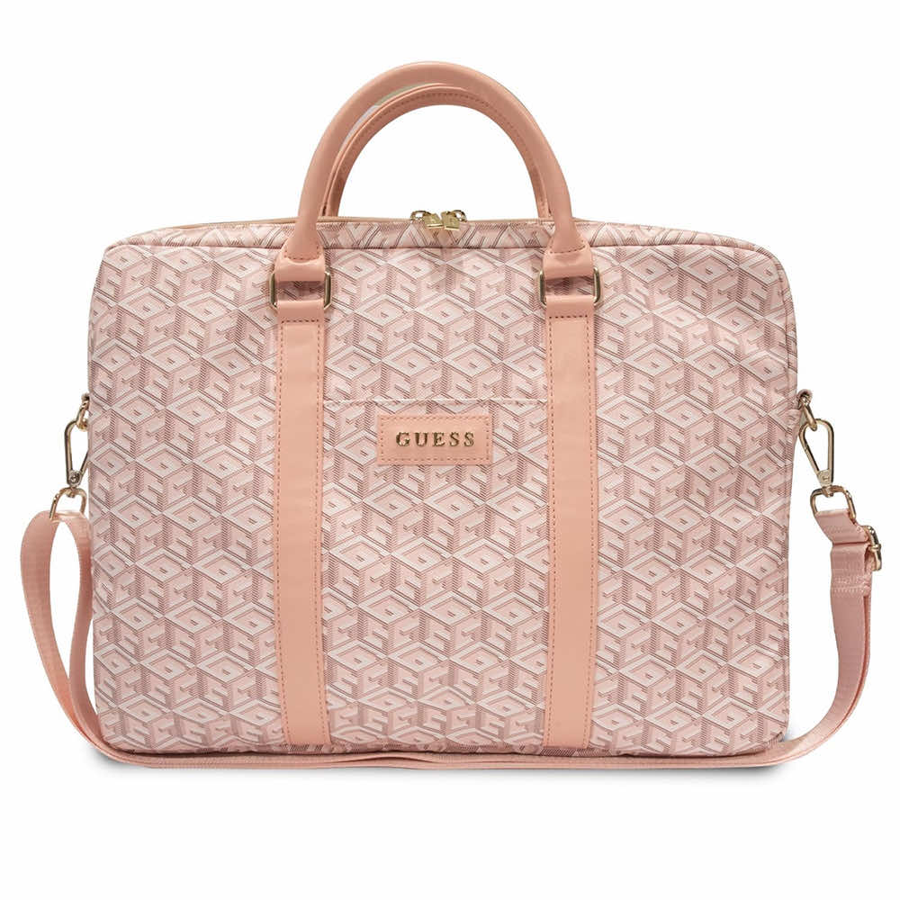 Луксозна дизайнерска чанта с дръжки и презрамка за преносими компютри до 16 инча - Guess PU G Cube Laptop Bag 16 (розов)