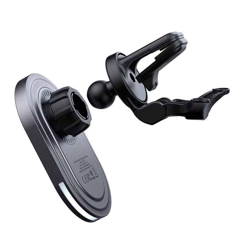 Магнитна поставка за радиатора на кола с безжично зареждане за iPhone с MagSafe (черен-прозрачен)  - Mcdodo Car Magnetic Wireless Charger 15W (CH-2340)