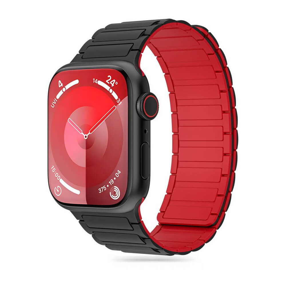 Магнитна силиконова каишка за Apple Watch 42мм, 44мм, 45мм, 46мм, Ultra, Ultra 2 49мм - Tech-Protect Iconband Silicone Magnetic Strap (черен-червен)