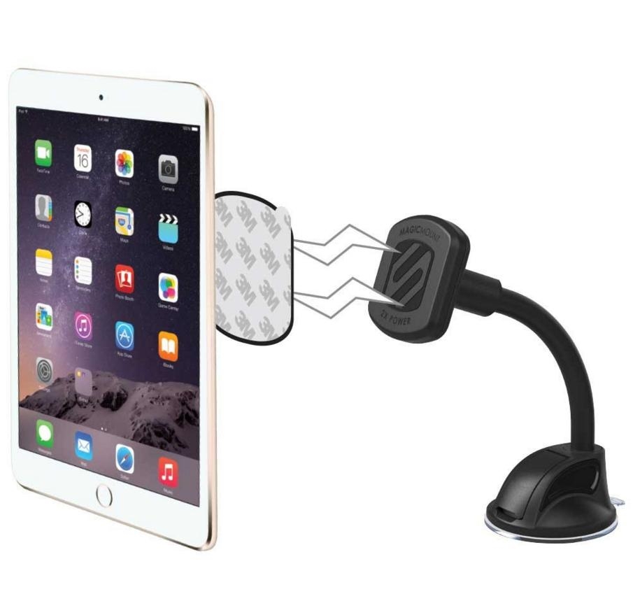 Ново поколение магнитна поставка на Scosche с два пъти по-силен магнит, за да може да поставяте и по-големи таблети