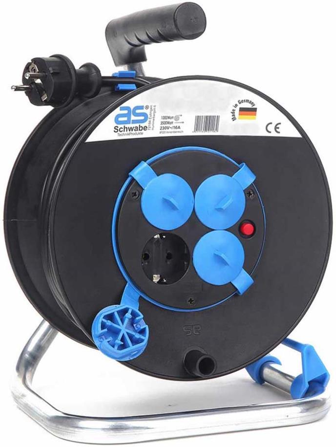 Макара 50м H05VV-F 3G1.5mm2 термична защита 4 шуко с капак и водач на кабела AS Schwabe