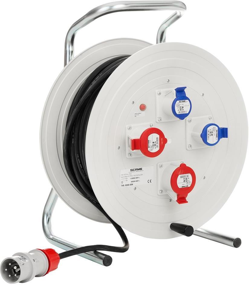 Макара индустриална IP44 серия ROLLER 450 кабел H07RN-F 30 метра х 2,5мм2 вход 3P+N+Е 16A и изход 2х 3P+N+E и 2х 2P+E 16A Scame