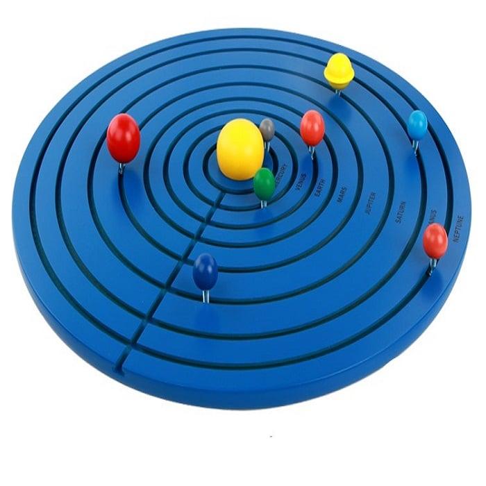 • Тази дъска има за цел да представи слънчевата система по по-практичен начин, като самите те могат да вадят и слагат различните небесни тела на правилните им места. Учейки, те ще се забавляват като назовават имената на планетите и изучавайки формите им. На дъската има и имената на планетите. С този материал децата ще развият въображението и фината си моторика.