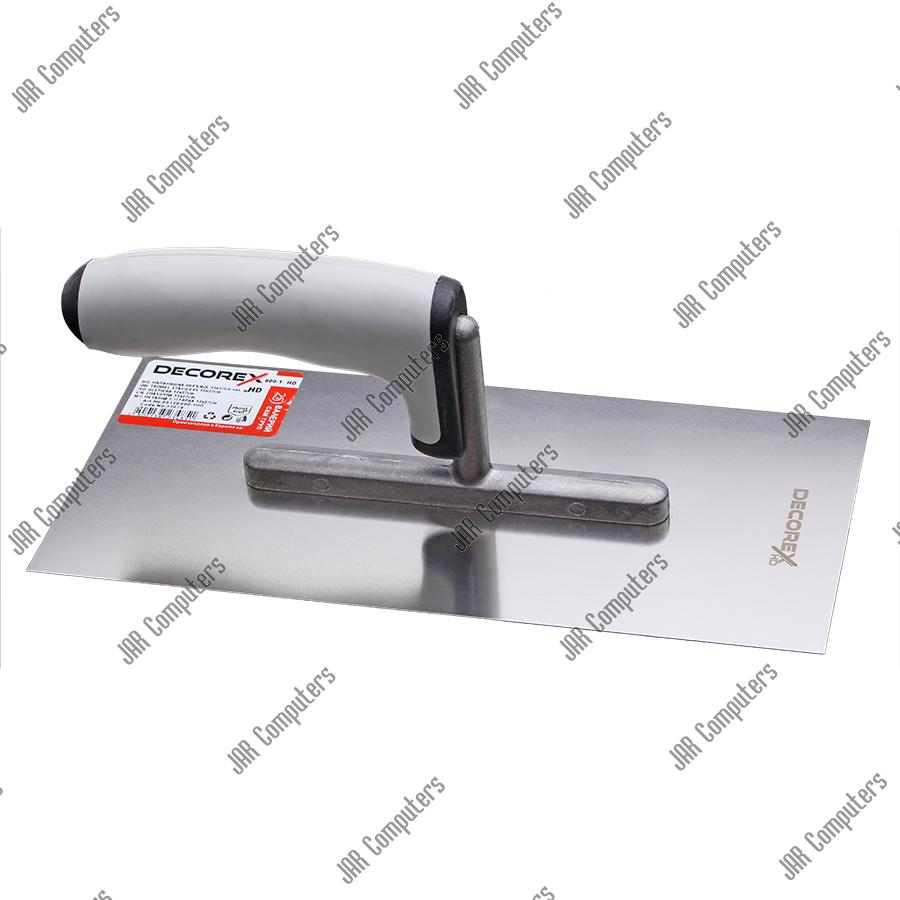 Маламашка DECOREX е изработена от киселинно-устойчива неръждаема стомана. Уредът за шпакловане притежава противоплъзгаща, двукомпонентна, отворена, алуминиева дръжка с полипропилен и термопластична гума. Маламашката е с дължина 270 мм и ширина 130 мм. Маламашката е инструмент, с които се заглаждат различни повърхности обработени със строителни разтвори.
