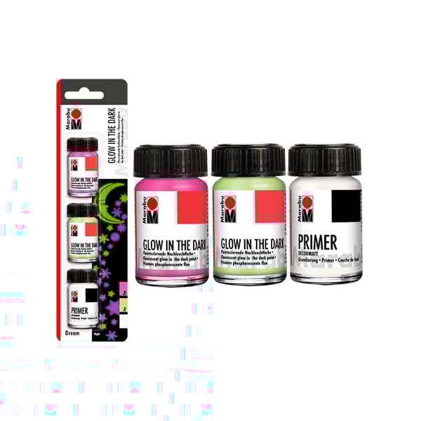 - 2 броя флуоресцентна светеща в тъмното боя 15 ml - розов 335, зелен – 366.