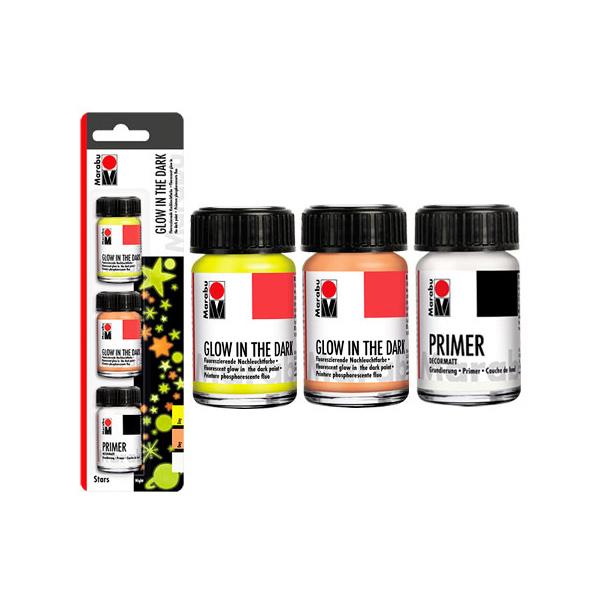 - 2 броя флуоресцентна светеща в тъмното боя 15 ml - жълт 322, оранж – 325.