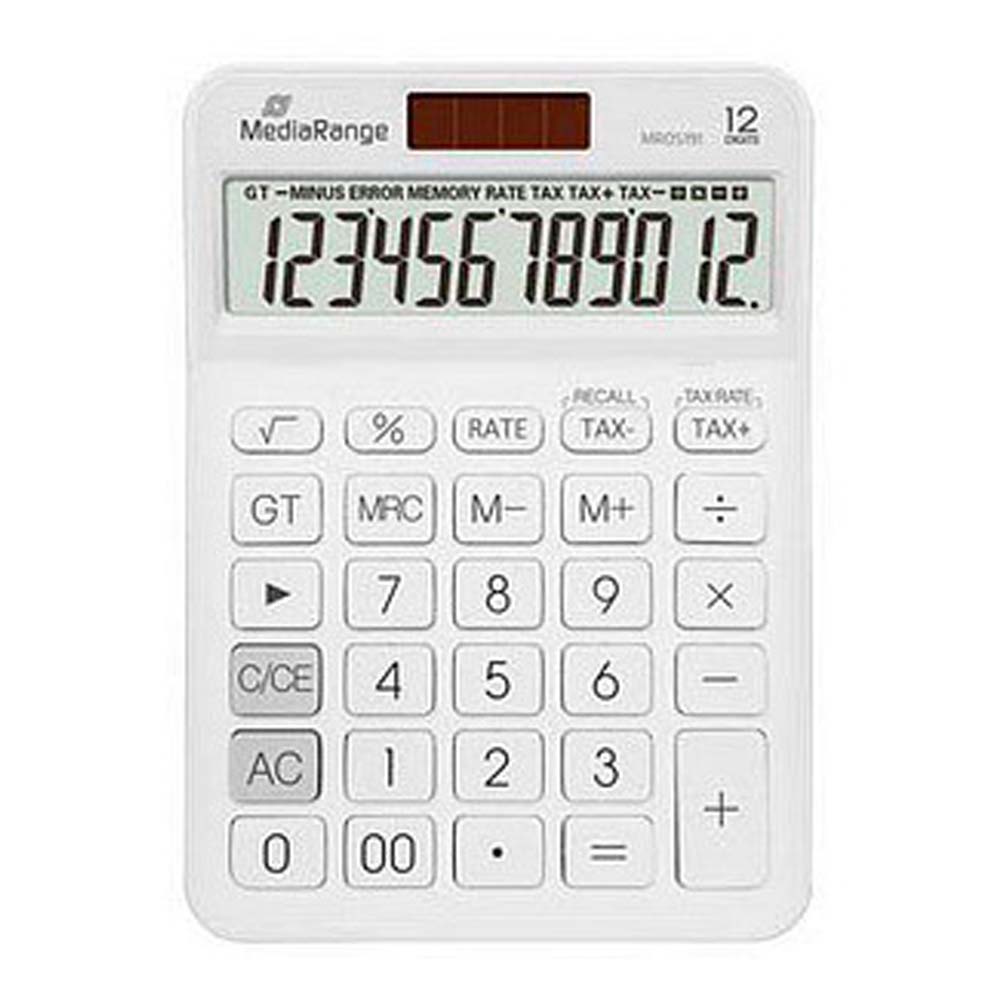 MediaRange Calculator with tax function, 12-digit LCD, solar and battery powered, white (MROS191)