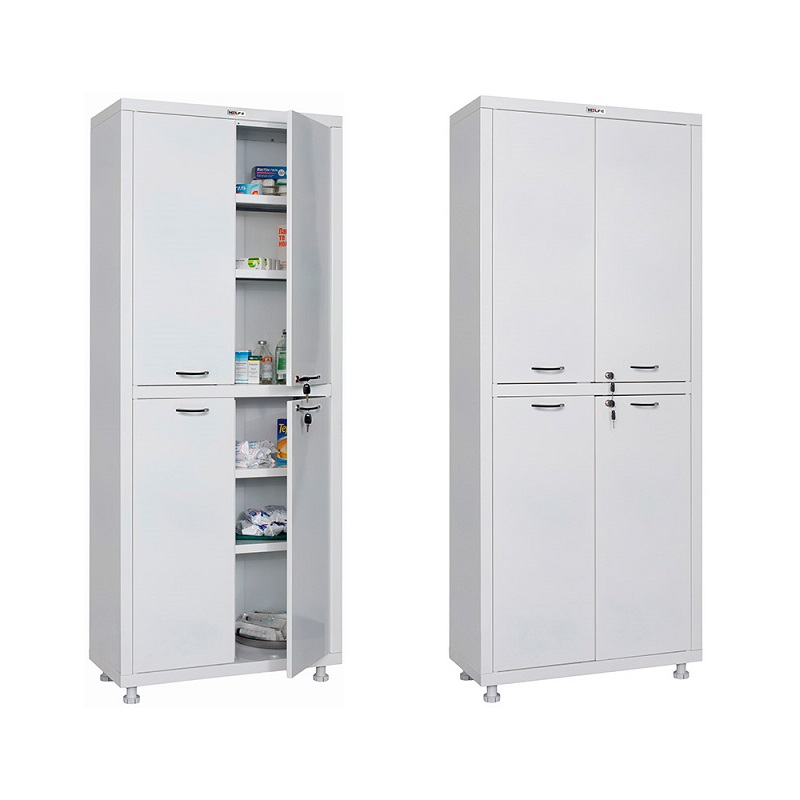 Медицински шкаф Hilfe МД 2 1670 SS, 1655/1755x700x320 мм, 4 рафтa, 4 плътни врати, бял