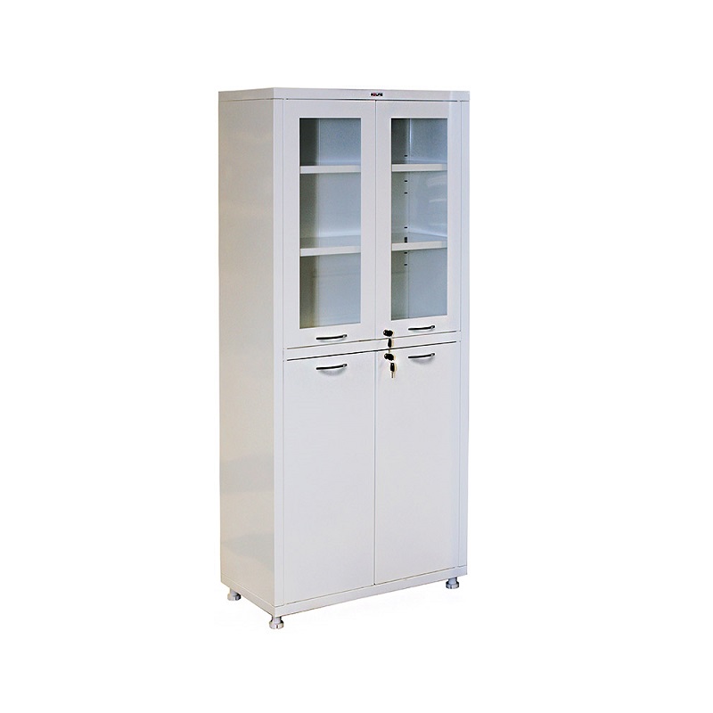 Медицински шкаф Hilfe МД 2 1780 R, 1750/1850x800x400 мм, 4 рафтa, 4 врати- метал и стъкло, бял