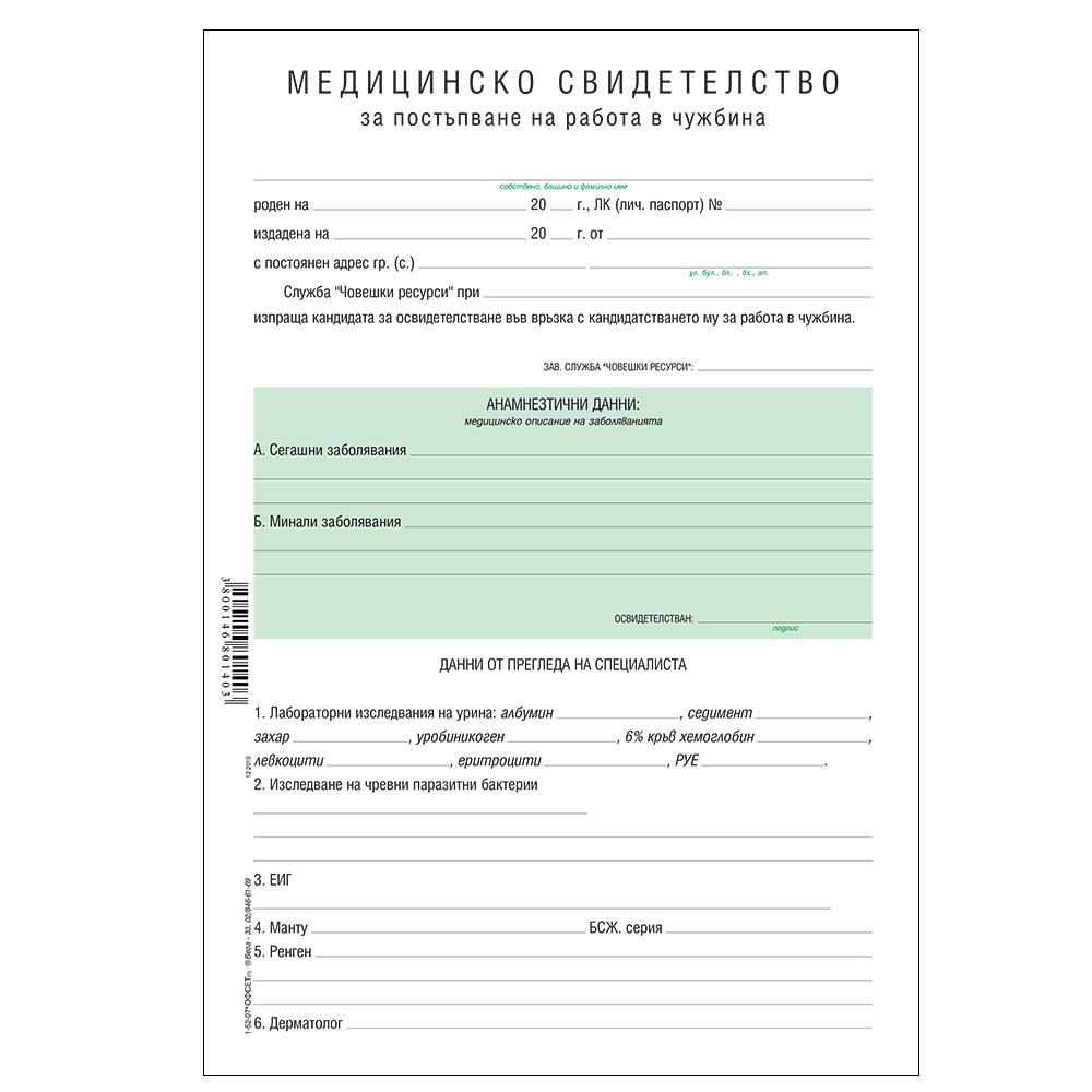 Медицинско за работа в чужбина блок 1-52-07*, офсетова хартия, A4, 100 л.