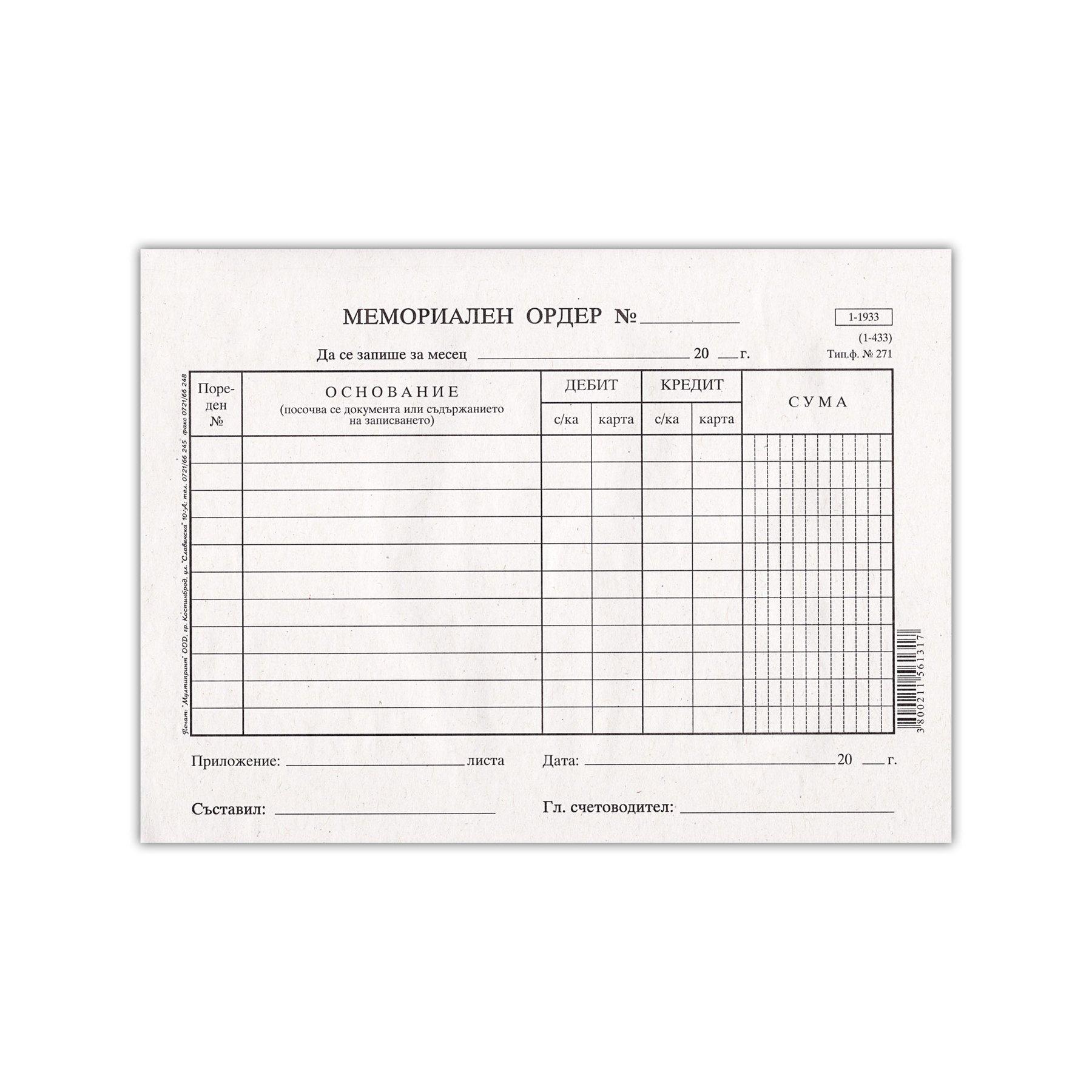 • Документ, с който се описват счетоводни статии, за които няма първичен счетоводен документ, например за преоценката на валута или приключвателните операции.