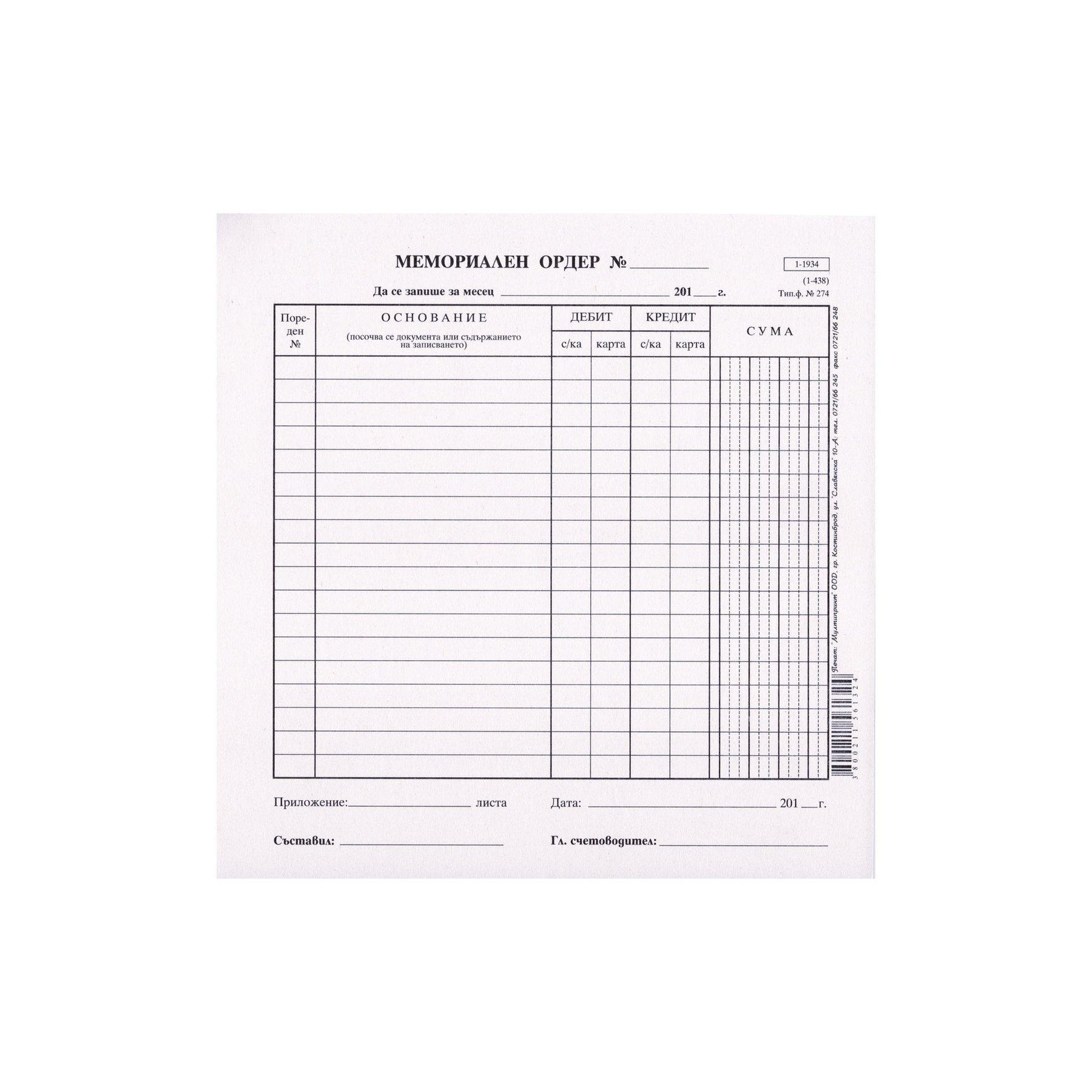 • Документ, с който се описват счетоводни статии, за които няма първичен счетоводен документ, например за преоценката на валута или приключвателните операции.