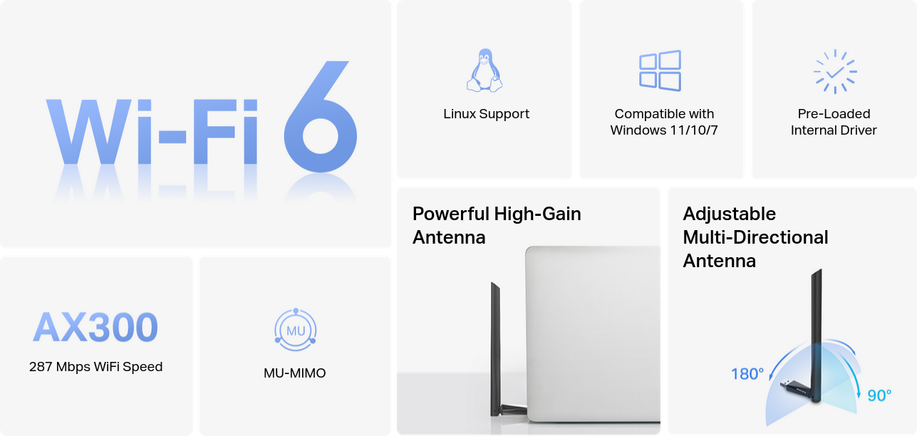 AX300 High-Gain Wi-Fi 6 Wireless USB Adapter