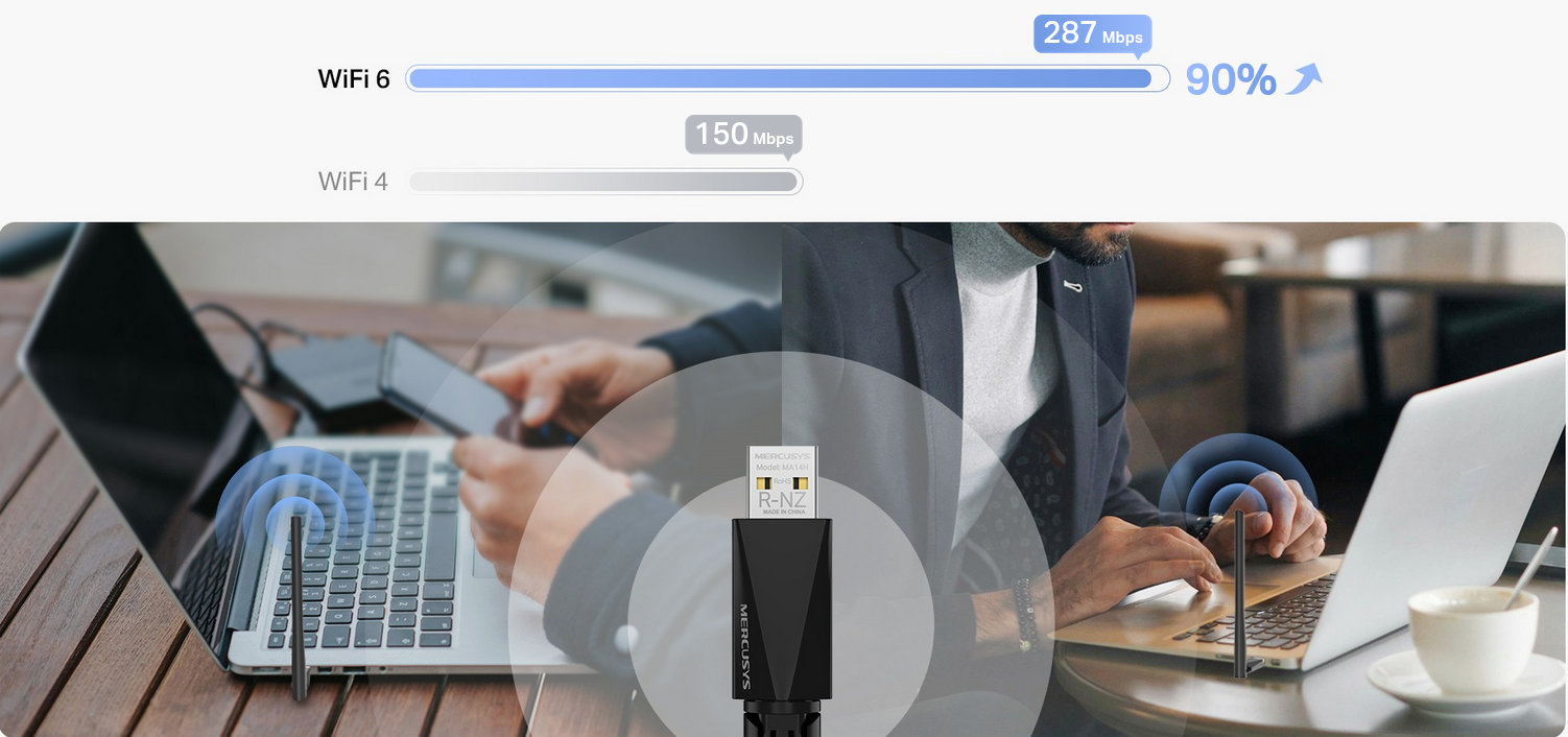 Experience powerful, uninterrupted WiFi with 1024-QAM technology. Just plug in the MA14H for smoother connectivity. Compared to traditional N150 adapters, it delivers faster speeds and broader coverage.