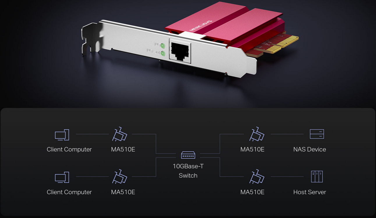 - Blazing-Fast 10 Gbps Networking — MA510E delivers extreme speeds of up to 10 Gbps, which is 10× faster than typical Gigabit adapters