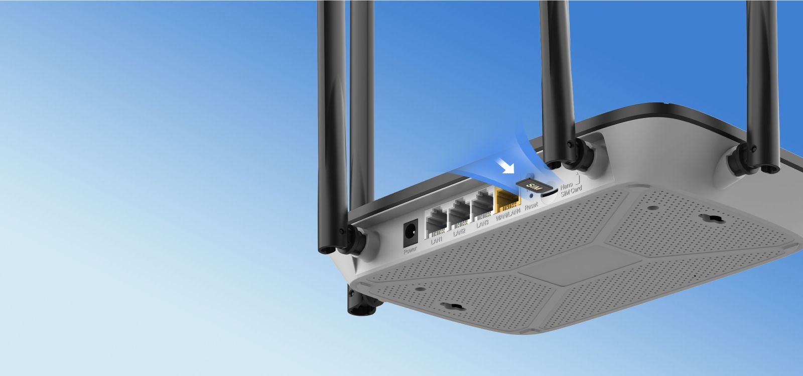 Interfaces | 1× 10/100Mbps LAN/WAN Port; 3× 10/100Mbps LAN Ports; 1× Nano SIM Card Slot |