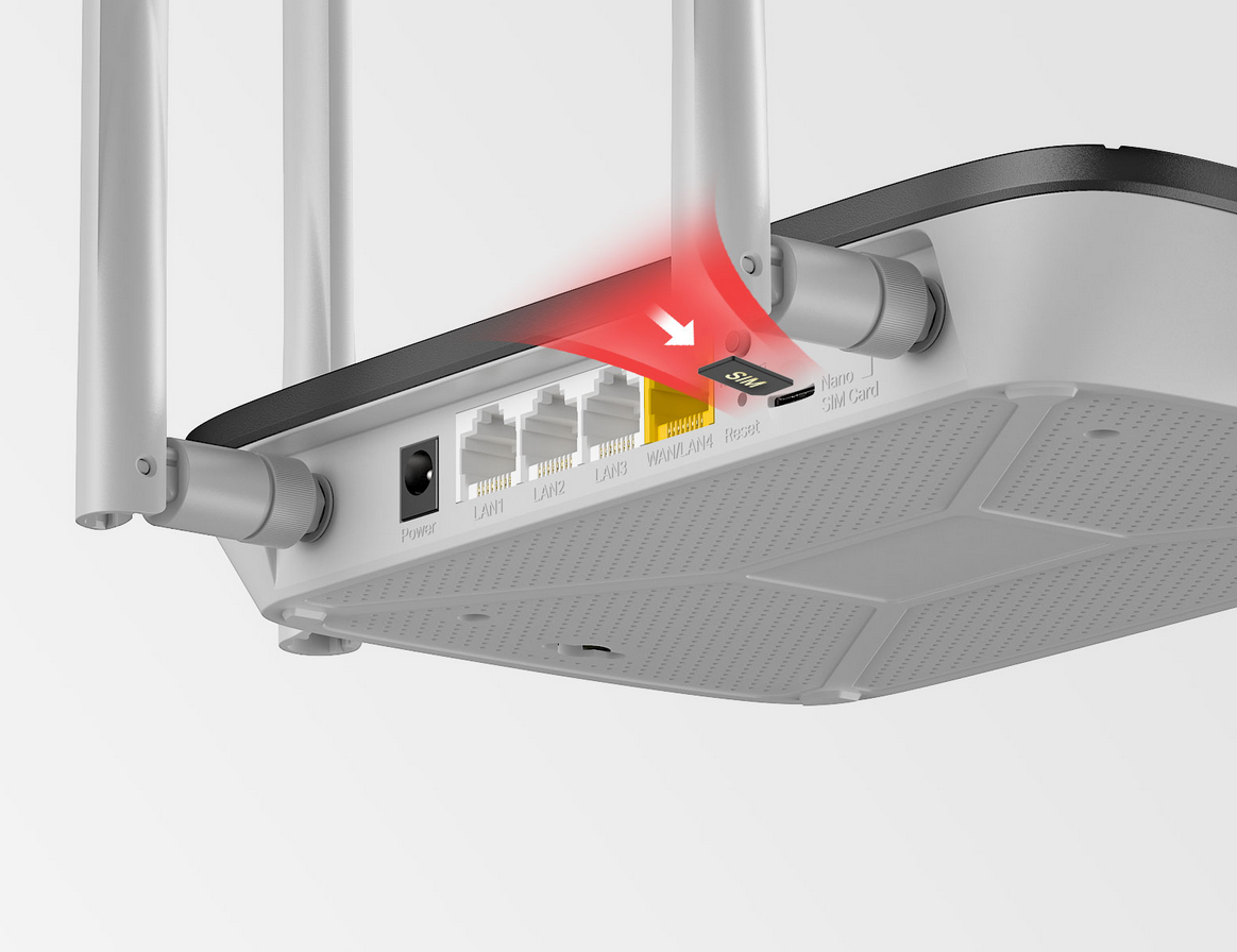 - Wi-Fi router mode – Plug an Ethernet cable into the LAN/WAN port for flexible access if you can't get a 4G connection