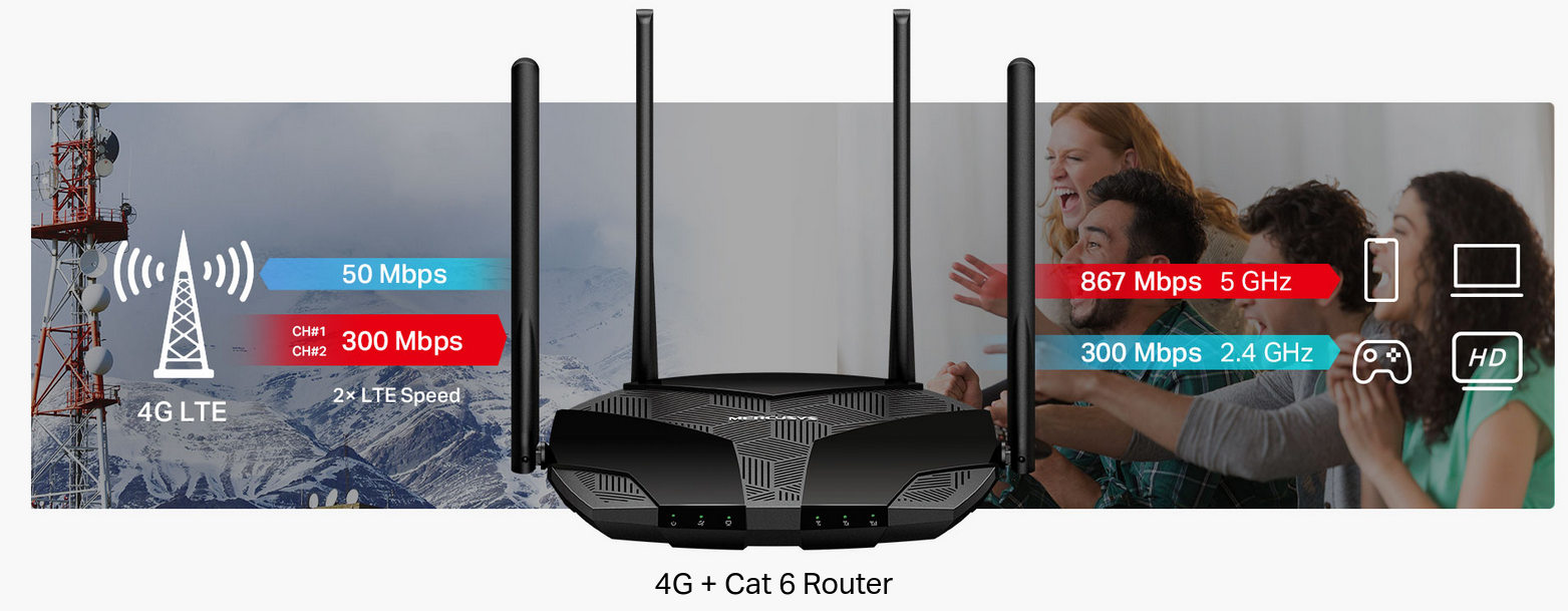 4G+ Cat6 AC1200 Wireless Dual Band Gigabit Router