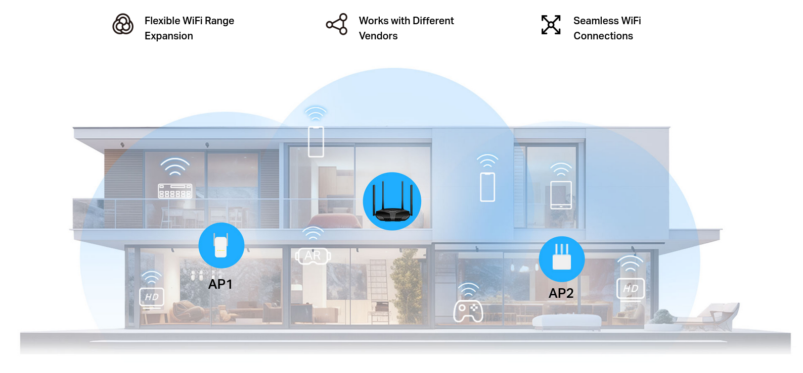 - EasyMesh Compatible – Works with EasyMesh routers and range extenders to form seamless whole home Mesh WiFi, preventing drops and lag when moving between signals.