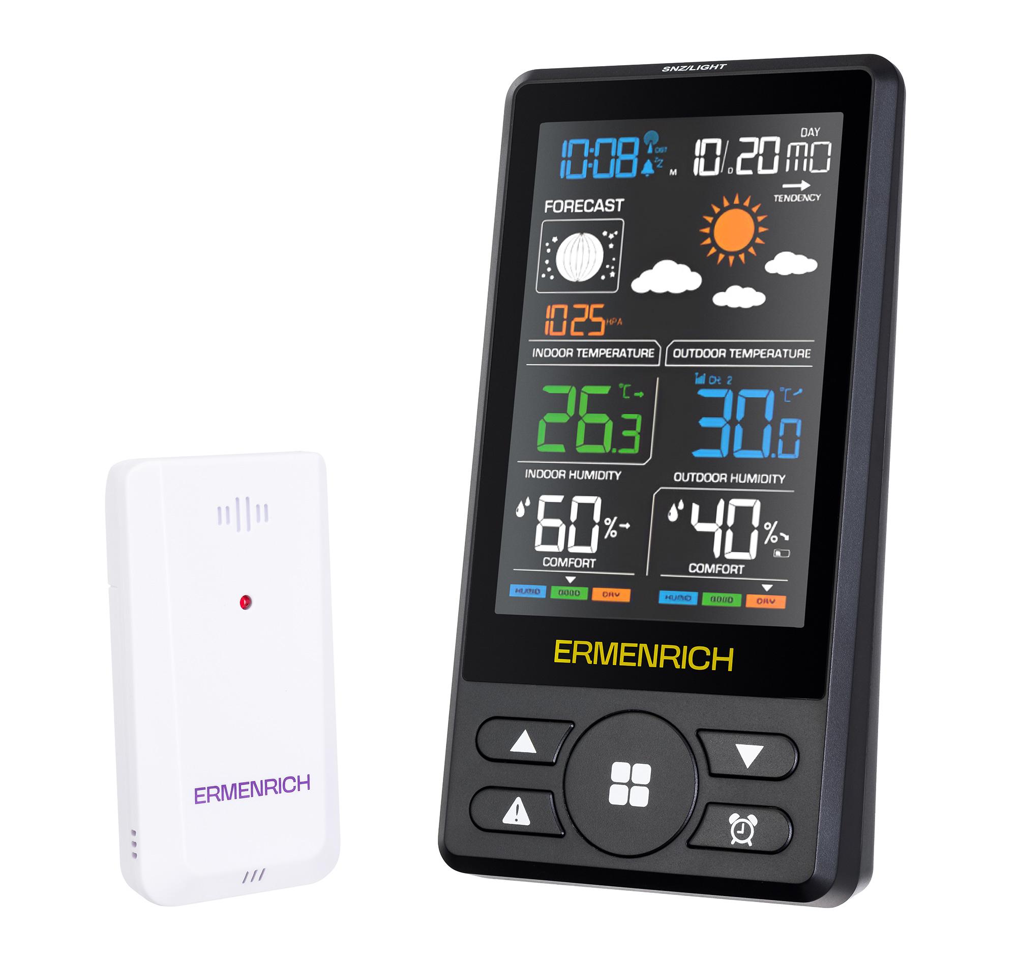 <p>Ermenrich Report WR50 се откроява от подобни модели с широките си работни диапазони. Тя измерва атмосферно налягане от 850 hPa до 1050 hPa, влажност от 10 до 99%, вътрешна температура от 0 °C до +50 °C и външна температура от −40 °C до +70 °C. Грешката за всеки от параметрите е минимална. В допълнение към измерването на атмосферни данни в реално време, уредът може да събира и записва информация за по-нататъшен анализ. Например, той записва минимални и максимални стойности на температура и влажност, предупреждава Ви, когато са надвишени високите или ниски прагове, и сигнализира, когато е достигнато определено ниво на топлина или студ.</p>