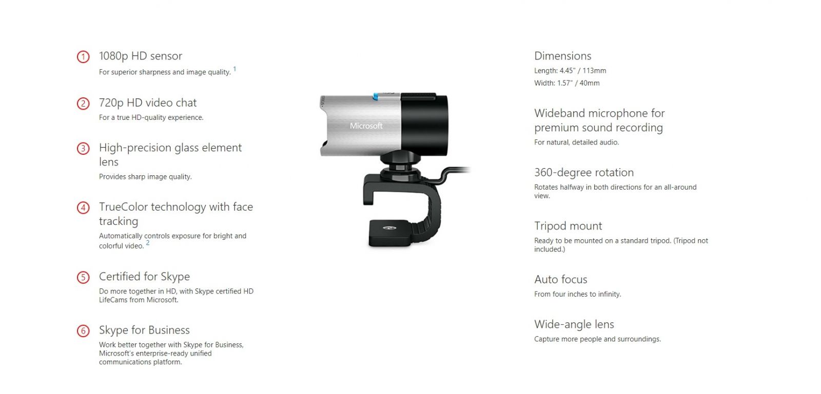 The Closest to being there Experience the amazing clarity and detail of HD video. With brilliant color and crystal-clear audio, this webcam with a 1080p HD widescreen sensor1Popular video call services support VGA resolution—not 1080p. and high-precision optics brings your far-away work, friends and family closer than ever before. |