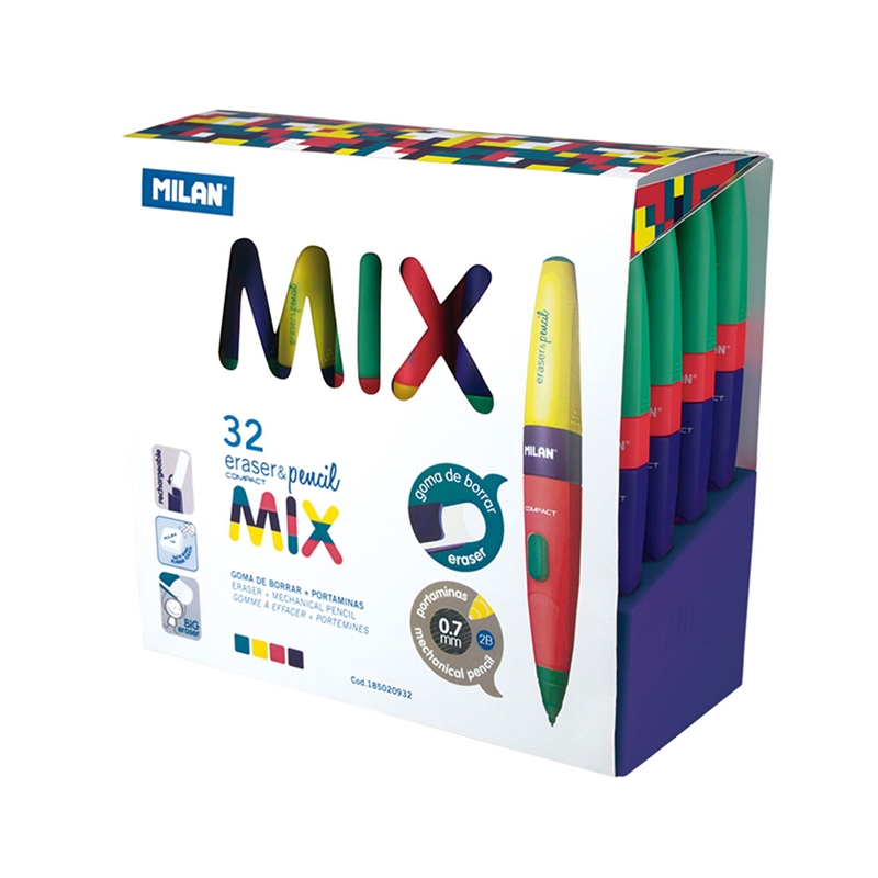 • Автоматичният молив Compact Mix ще ви впечатли със своя оригинален дизайн, изцяло разработен от компанията Milan. Toй превръща обикновения пишещ инструмент в любима вещ, носеща настроение.
