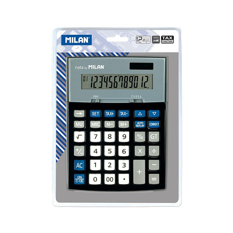 Milan Калкулатор Check Button, 12-разряден, черен, в блистер, опаковка 8
