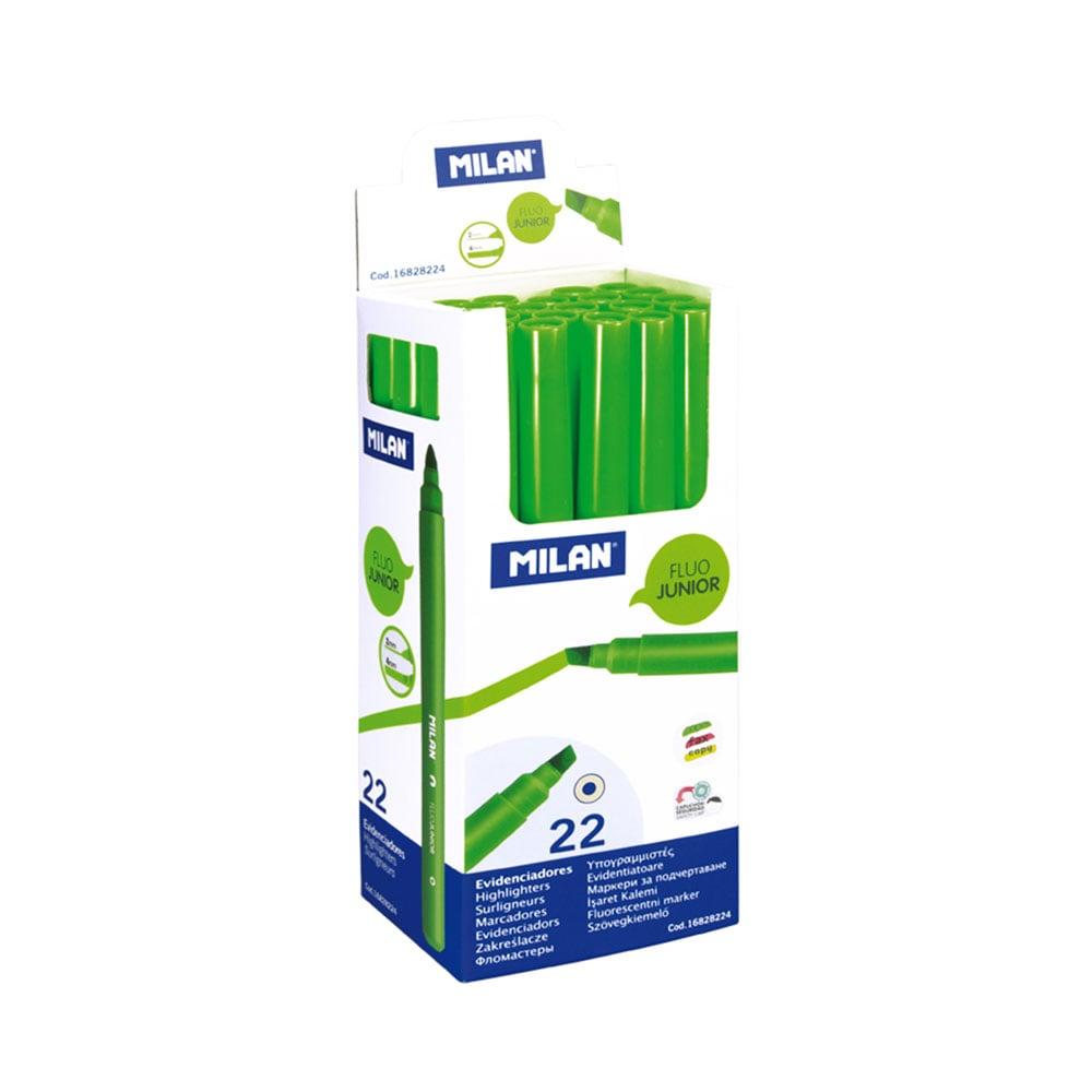 • Флуоресцентен зелен маркер Milan Junior. Подходящ за подчертаване върху обикновена хартия, фотокопия и термо хартия.
