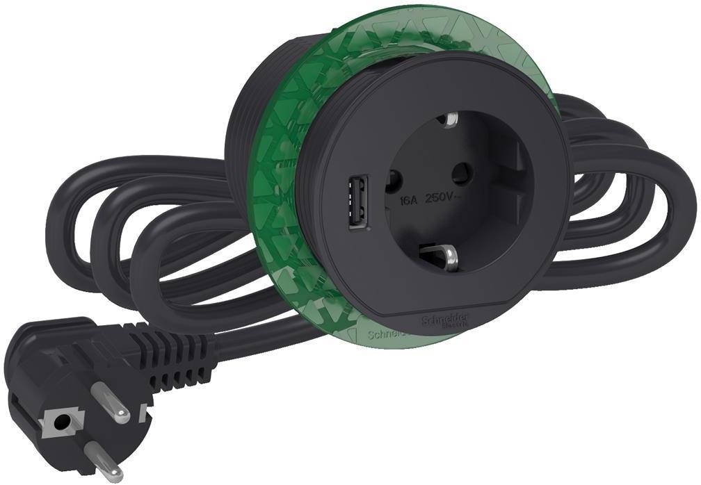 Модул за вграждане в бюро 1х шуко и 1xUSB тип A, кабел 2м, цвят Антрацит Unica System+ SE