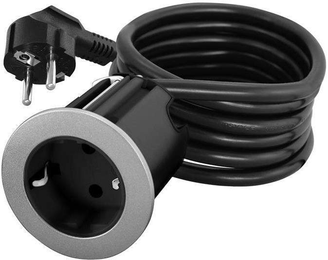 Модул за вграждане в бюро с 1х Шуко, кабел 2m, Ø60mm, цвят ЧЕРЕН, Commel