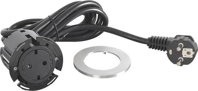 Модул за вграждане в бюро с 1х Шуко, кабел 2m, Ø60mm, цвят ЧЕРЕН МЕТАЛ, Incara Disq Legrand