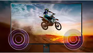 Built-in stereo speakers for multimediaA pair of high-quality stereo speakers built into a display device. They may be visible front firing, or invisible down firing, top firing, rear firing etc. depending on model and design. | ![]() |