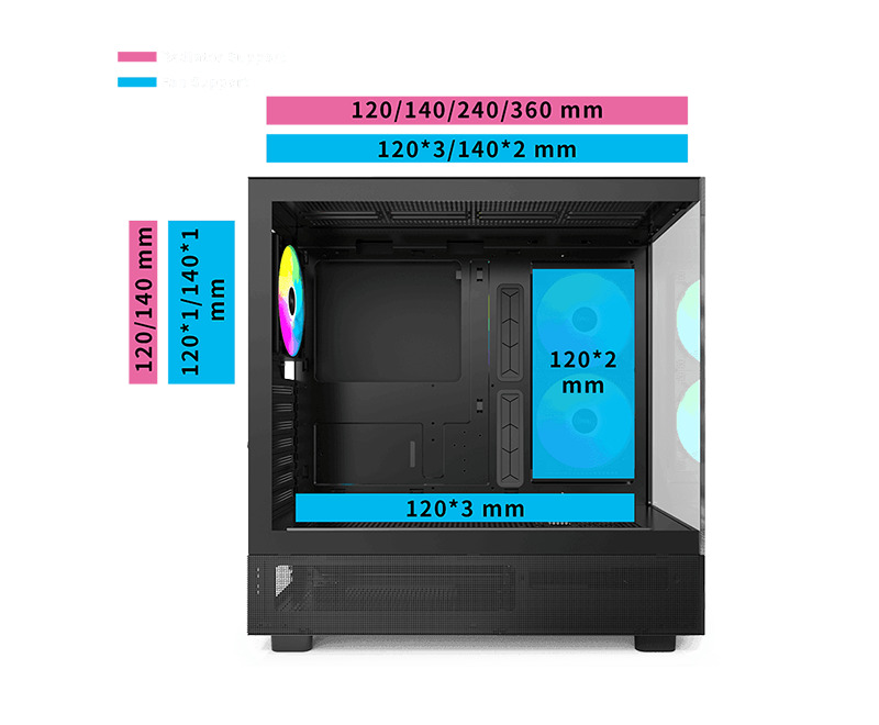 | Pre-installed Fan (s) | Side | 120mm*2 (Reversed ARGB PWM Fans) |
