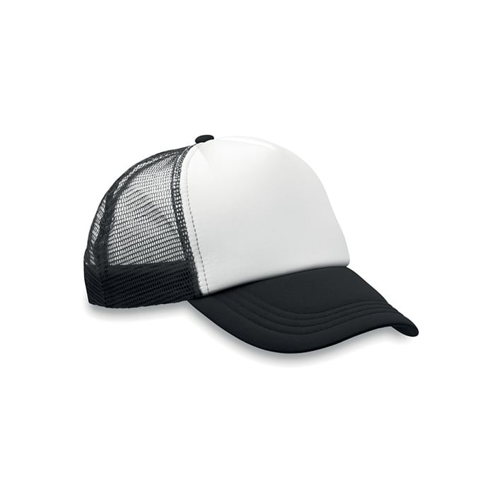 • С бял преден панел и цветна козирка от полиестерно трико с подложка от пяна.