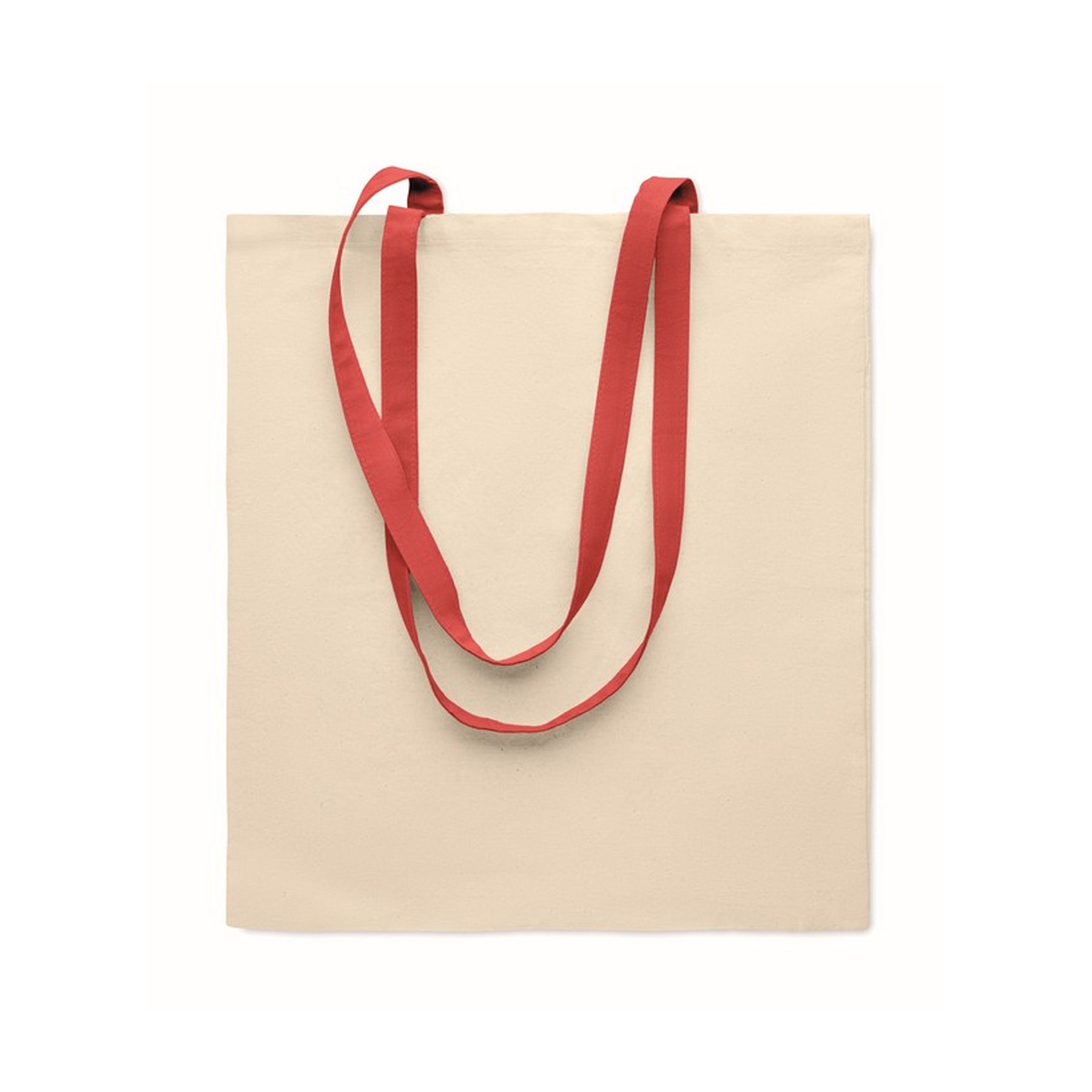 • Памучната пазарска чанта е проектирана с дълги дръжки в червен цвят, които освен, че правят носенето на покупките лесно и удобно, са чудесен завършек на всяко облекло!